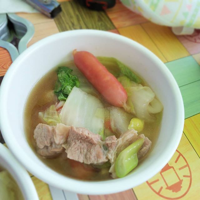 晩御飯は余った食材を鍋キューブでスープに。