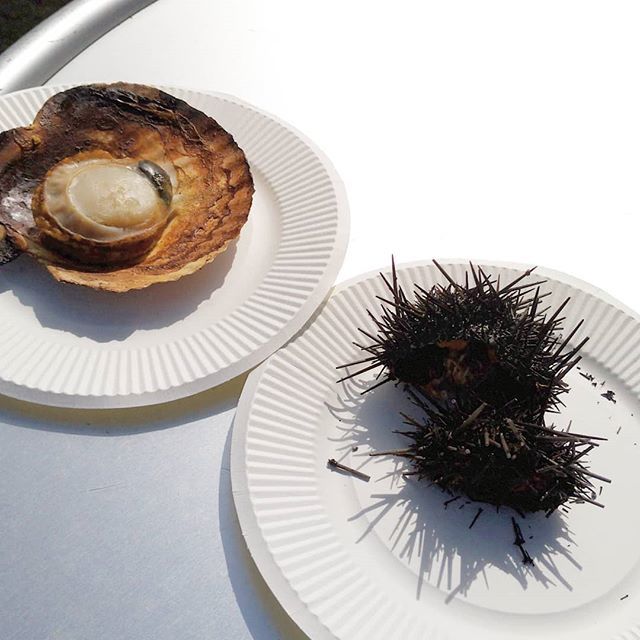 焼きホタテと焼きウニ。お祭りは8時半からだけど、準備できた出店からちょっとずつ売り出してる模様。 ift.tt/2IWSdRk pic.twitter.com/43Wk09qsCz