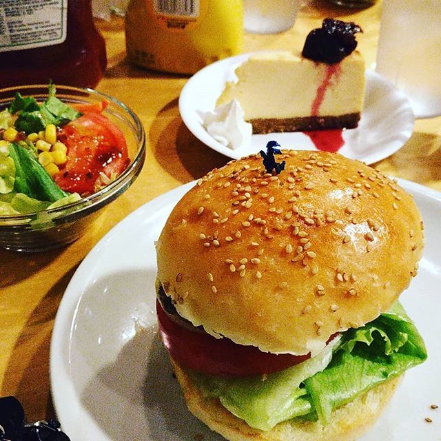 最初にヨコスカネイビーバーガーとチェリーチーズケーキが出てきて、