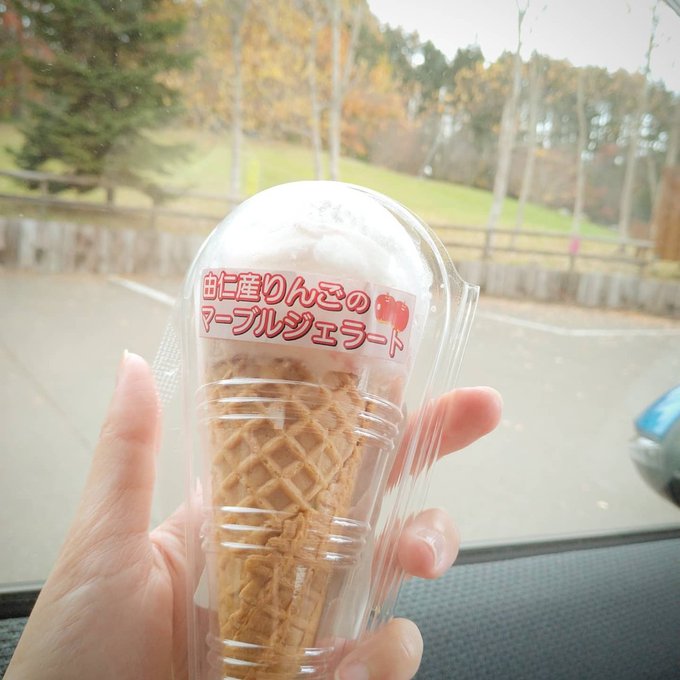 最後に売店でいろいろお土産を買ってチェックアウト。由仁産りんごのマーブルジェラートのりんごの味が濃くて美味しい。体重計はしばらく見ない。 instagr.am/p/CHB4X0fBiKq/ pic.twitter.com/0Oo50oM6SC