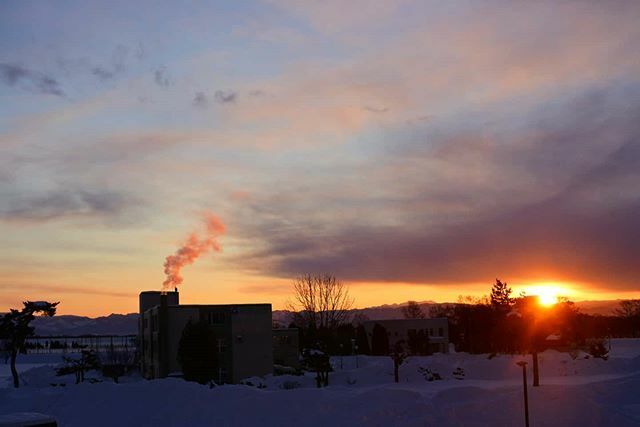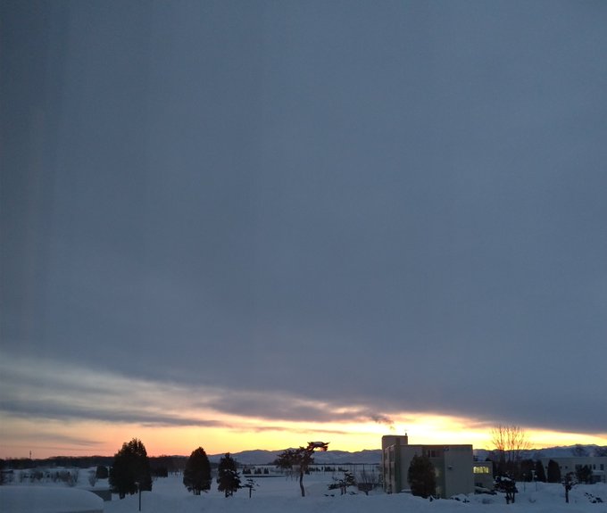 朝起きてすぐ温泉入れる幸せ。 今日の月形は曇ってるけどあと10分くらいで日の出。 −15℃だけあって窓のサッシには冷凍庫のような霜が。 pic.twitter.com/4BZuAXwoeo